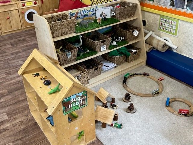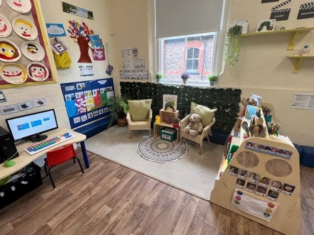 The Sunflowers room is spacious, bright and inviting. There is a variety of carefully thought out areas that are well resourced in order to attract early learners and promote all areas of their development, and early learning goals.